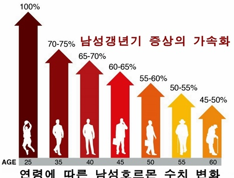 40대 이상 남성의 약 20~30%가 남성호르몬 감소로 인한 증상을 경험
